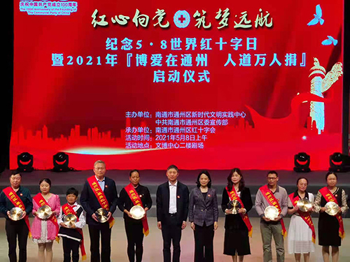 5月8号是第74个世界红十字纪念日,南通新华建筑集团董事局主席易杰祥参加了2021年“博爱在通州人道万人捐”启动仪式,作为通州区唯一一位爱心企业家代表受邀参加了南通市红十字会“红会心向党奋进新征程”爱心企业倡议主题活动。