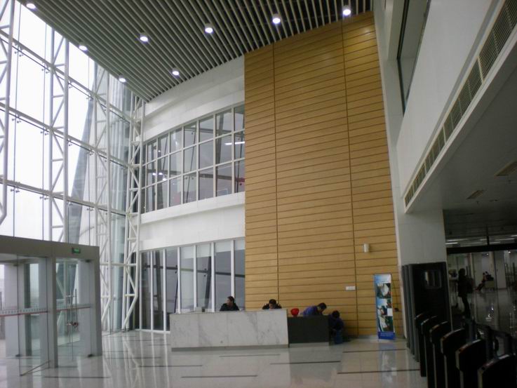 室内装饰有异型钢板吊顶、铝板吊顶、矿棉板吊顶、石膏板顶棚,铝圆吊顶、硅钙板吊顶、铝格栅吊顶及乳胶漆顶棚、墙面有干挂大理石、钢板墙面、木饰墙面、软包墙面及钢板包柱、玻璃隔断、玻化砖、乳